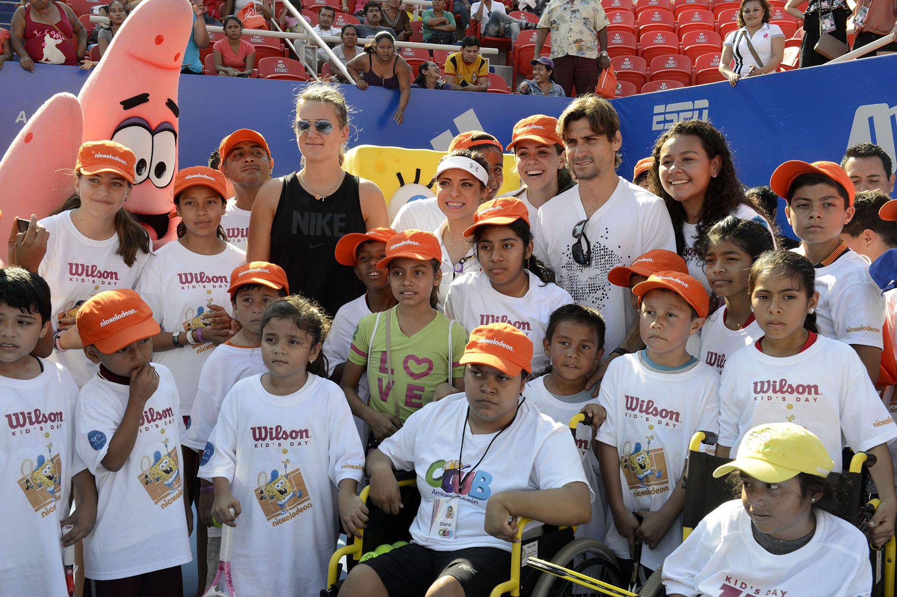 Acompañados por los personajes de Nickelodeon, “Bob Esponja” y “Patricio”, los tenistas se mostraron impresionados por la cantidad de ñiños que se reunieron para conocerlos y se dejaron querer por ellos, respondiendo con una gran actitud y ánimo sin importar la edad, ni las condiciones físicas de los jóvenes, muchos de los cuales llegaron en silla de ruedas.