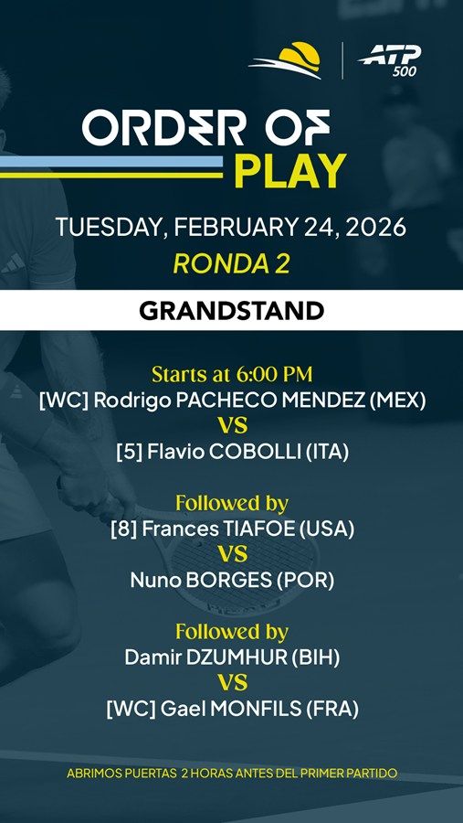 A pesar de la salida en primera ronda del dos veces campeón en Acapulco, el australiano Alex de Miñaur, sorprendido por el estadounidense P. Kypson, la afición terminó por salir ganadora tras un espectáculo de encuentro que se decidió en tres sets, con dos tie breaks. El cuarto sembrado y finalista en 2025, Alejandro Davidovich Fokina, pasa a ser el favorito en la parte baja del cuadro. Sin embargo, la gran noticia de la jornada fue que el mexicano Miguel Anges Reyes-Varela debutó con victoria en su partido de dobles junto al portugués Nuno Borges. Vencieron 6-3, 6-3 a los segundos sembrados H. Nys y E. Roger-Vasselin.