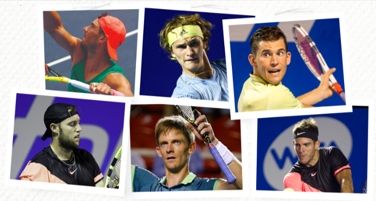 Rafael Nadal (baja), Alexander Zverev, Dominic Thiem, Jack Sock, Kevin Anderson y Juan Martín del Potro fueron las principales cartas