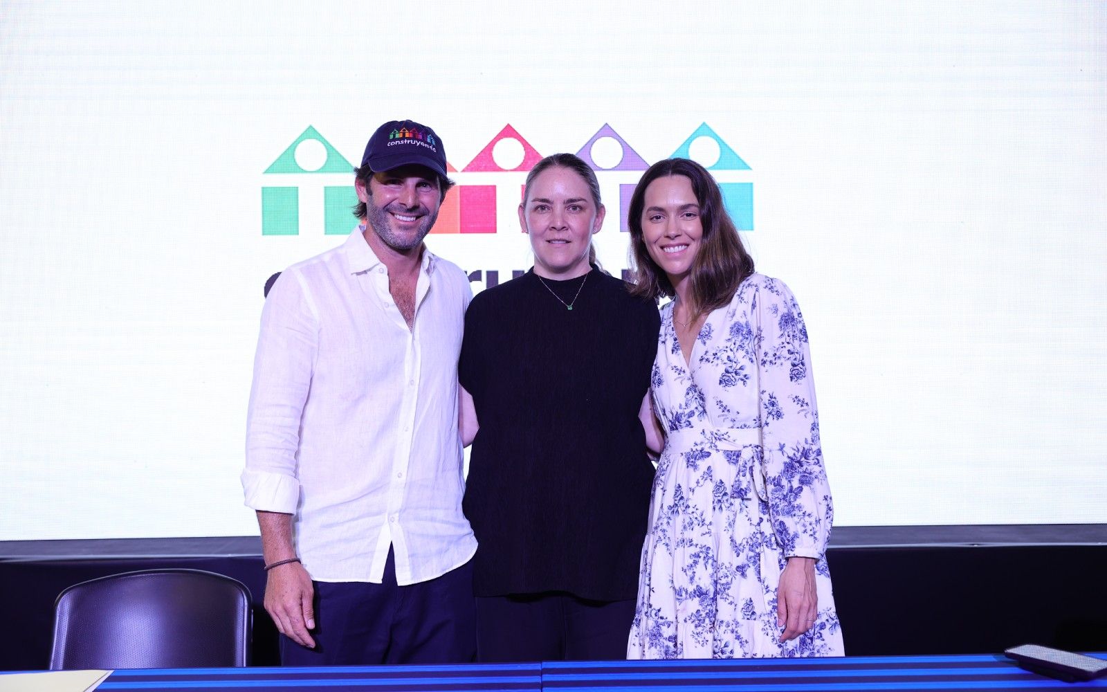 Renata Burillo, president of the Board of Directors of Mextenis, Alfonso Serrano, president of the Board of Trustees of Construyendo, and Cristina Pilgrim, general director of the Construyendo Association, gave details of the reconstruction they have promoted in the area of Puerto Marqués.