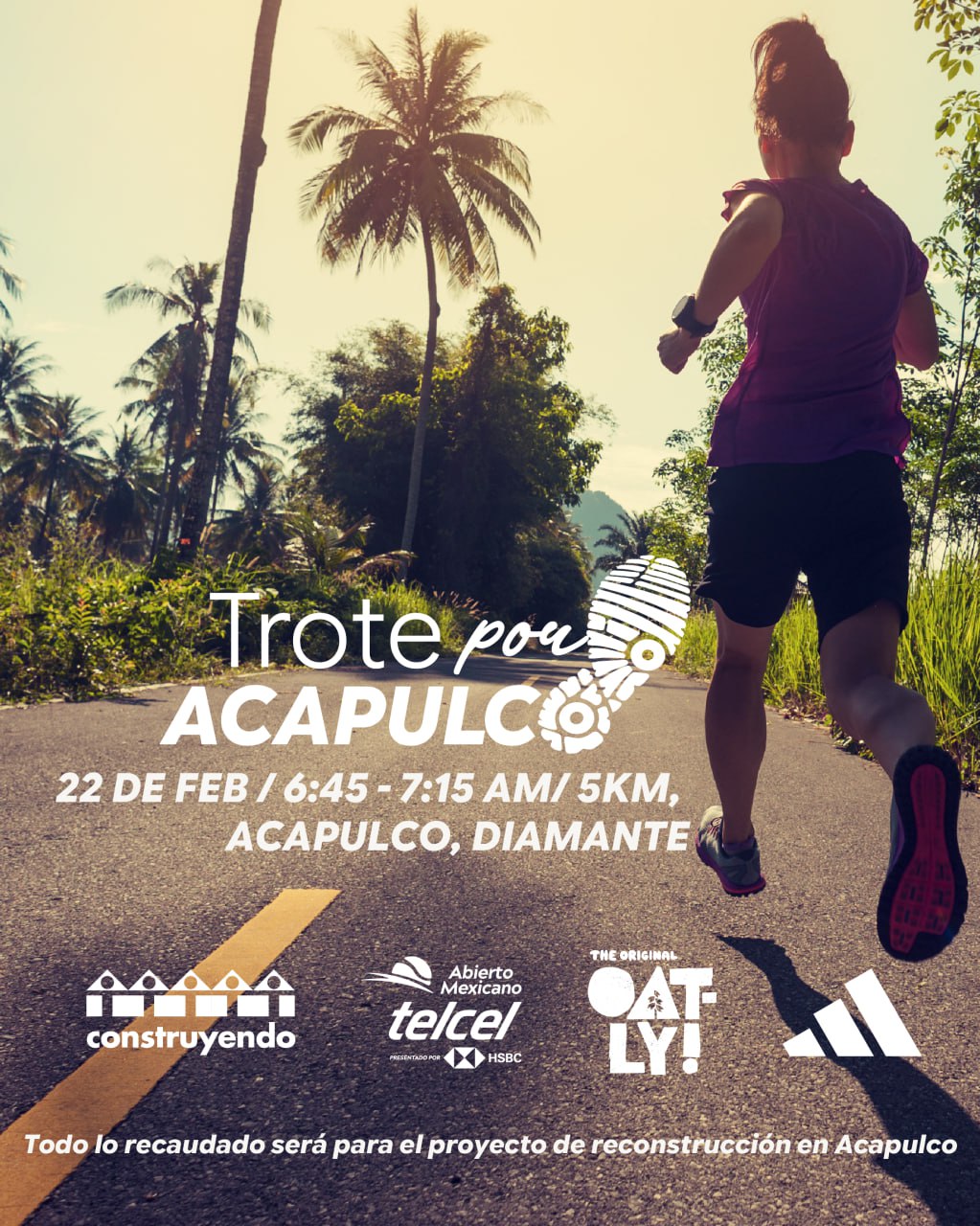 Por eso, el Abierto Mexicano Telcel presentado por HSBC, en alianza con ADIDAS y OATLY, te invita a participar en el Trote por Acapulco 5K en Acapulco, Punta Diamante con causa, para seguir Construyendo Hogares.