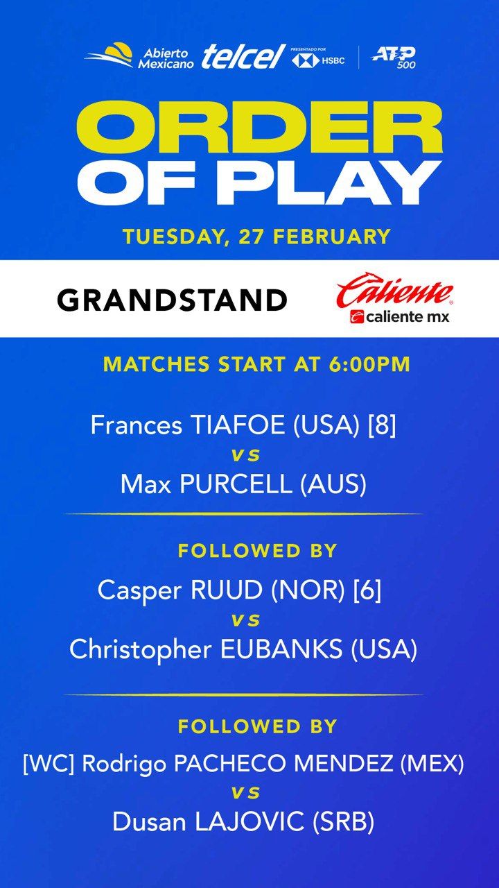 Fue una jornada inaugural en que dos de cuatro favoritos dentro del Top 20 mundial lograron avanzar a segunda ronda. El campeón defensor Alex de Miñaur logró obtener una sólida victoria ante el japonés Taro Daniel y así encaminarse a la defensa de sus puntos en Acapulco, sin embargo, su rival en la final de 2023, el estadounidense Tommy Paul, fue la primera sorpresa del torneo al quedar eliminado por parte del británico Jack Draper, por lo que sufrirá una dura caída en el ranking. Su compatriota Taylor Fritz, ambos ganadores de torneos en las últimas semanas, también fue sorprendido por el italiano Matteo Arnaldi en tres sets, por lo que de siete representantes de Estados Unidos al iniciar el torneo, solo quedan cinco y eso gracias a que la joven sensación Ben Shelton, logró salvar su debut ante Daniel Evans al abrir la cancha central. Este martes entran en acción los grandes favoritos Alexander Zverev, Holger Rune, Stefanos Tsitsipas y Casper Ruud.